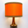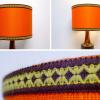 This orange lampshade is covered in original midcentury fabric and finished with vintage style fabric trim.